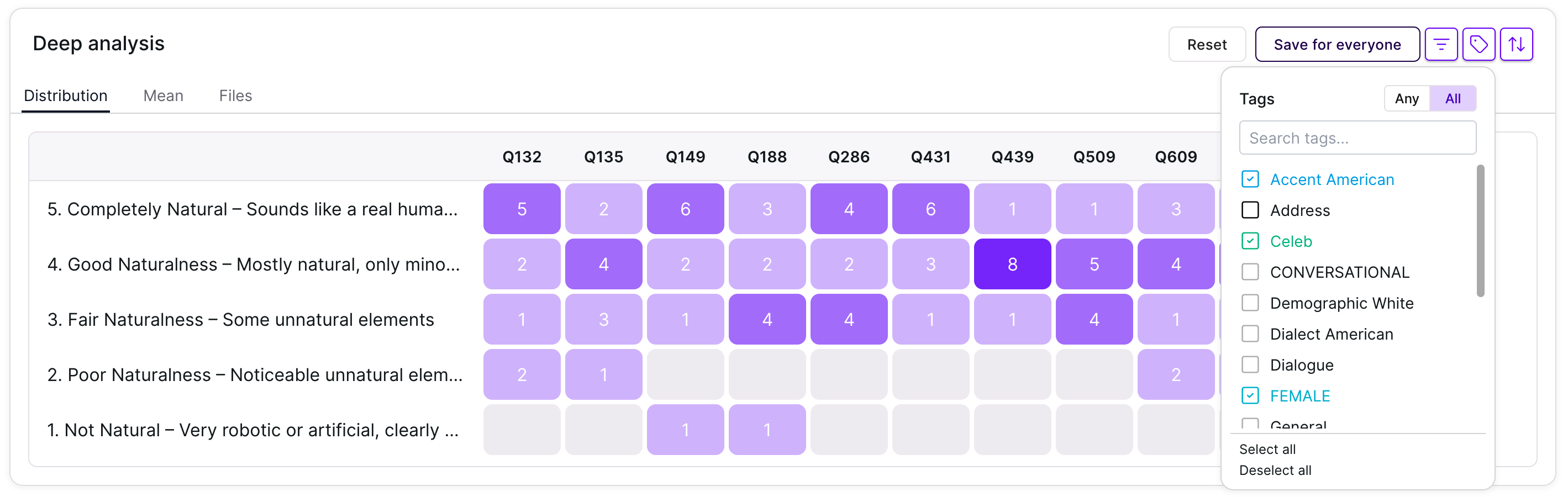 We added an Any/All toggle to the tag filter within the Deep Analysis section of reports.This feature provides flexible filtering logic:- Any: Matches results containing at least one of the selected tags.